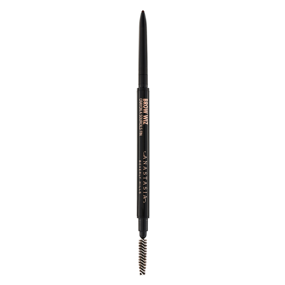 Anastasia Beverly Hills Brow Wiz® is een ultra-slank, intrekbaar wenkbrauwpotlood dat ideaal is om de wenkbrauwen met professionele precisie te omlijnen en te detailleren. De unieke waxformule heeft een perfecte mix van tint en wax om zo perfect gekleurde, natuurlijke wenkbrauwen te creëren en deze er voller uit te laten zien. De ultrafijne tip bootst haarachtige streken na op de spaarzame delen van de wenkbrauw, terwijl het spoolie-einde helpt de aangebrachte hoeveelheid te blenden voor een natuurlijk uitziende finish.