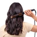 Salonstyler die een perfect zacht en glad resultaat geeft en ook lang houdbare krullen creëert. Supergepolijste titanium platen maken het haar glad in één beweging en de afgeronde roestvrijstalen bovenkant zorgt voor onberispelijke krullen en golven. Met de extra lange platen kun je grote secties in één keer stylen voor snelle resultaten die werken voor alle haartypes. De ionische technologie vermindert statische elektriciteit en geeft je haar een mooie glans. 5 digitale warmtestanden van 150°C - 230°C en een Advanced Ceramics™ verwarmingssysteem dat een constante hoge warmte handhaaft tijdens het steilen, zorgen voor professionele salonresultaten.