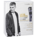 Een stijlvolle tondeuse die met of zonder snoer kan worden gebruikt en carbon/titanium messen heeft met zeer goede snijprestaties. 60 minuten gebruik in snoerloze modus. 26 snijlengtes tussen 0,5-25 mm die gemakkelijk kunnen worden aangepast met een draaiwiel. Afneembaar en afwasbaar mes voor eenvoudige reiniging. Baardkam inbegrepen.