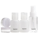 - Een complete reis-set voorzien van kleine flesjes die je kunt vullen met je favoriete producten. Inhoud: twee kleine potjes (15ml), twee flesjes (50ml) en een sprayflacon (50ml).