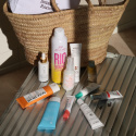 De producten worden geleverd in onze geborduurde make-uptas, exclusief ontworpen voor deze sets. Praktisch, ruim en ideaal voor al je zomertrips. - Informatie