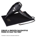 Krijg prachtig haar in de helft van de tijd* met de ghd air® professionele haardroger. De krachtige 2100W** professionele motor en het gepatenteerde verwijderbare luchtfilter zorgen voor een hoge luchtstroom voor snel drogen, terwijl de geavanceerde ionische technologie pluizig en springerig haar vermindert voor een gladde salonfinish in de helft van de tijd*. Met de variabele vermogens- en temperatuurregeling kun je de föhn aan je haartype aanpassen, terwijl de cool shot-knop helpt om je stijl te fixeren. Dankzij het ergonomische ontwerp ligt de föhn comfortabel in de hand voor zowel links- als rechtshandige gebruikers.