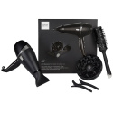 De set bevat een geconcentreerd mondstuk voor precisiestyling, terwijl het diffuseraccessoire krullen en golven definieert. Maak het föhnen af met de twee clips† en keramische borstel voor een zachte finish