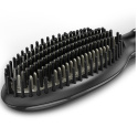 De keramische technologie met ionen verwarmt de borstel gelijkmatig naar de optimale stylingtemperatuur van 185 °C, voor gegarandeerd gezonder haar. De ionen in de borstel zorgen ervoor dat frizz/pluis in slechts een paar snelle bewegingen verdwijnt. De combinatie van korte en lange borstelharen maakt het mogelijk grote secties te stylen en geeft het haar een zachte en natuurlijke beweging.