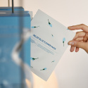 Breng na het reinigen en tonifiëren het bladmasker aan op het gezicht. Verwijder na 10-20 minuten het masker en gooi het weg, dep de resterende essentie erin en vervolg met een vochtinbrengende crème.
