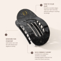 De Lenoites Flat Hair Clip is een elegante haarclip gemaakt van milieuvriendelijk celluloseacetaat, een exclusief en duurzaam materiaal dat licht, sterk en luxueus aanvoelt. Het ergonomische ontwerp volgt de vorm van het hoofd en biedt de hele dag een stevige grip zonder het haar te beschadigen.