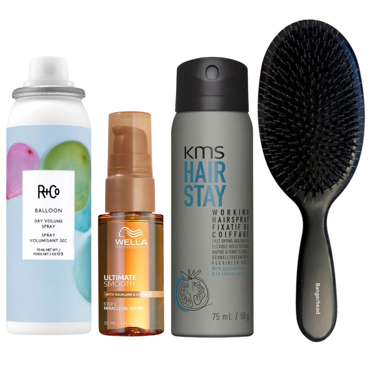 Een haarborstel gemaakt van een mix van echt zwijnenhaar en nylon spikes om het haar te ontwarren in gemakkelijke slagen en pluis te voorkomen. Masseert en stimuleert zachtjes de hoofdhuid en verdeelt oliën in de hoofdhuid langs de lengten van het haar voor een natuurlijke glans.2. Volume Spray - R Co Balloon Dry Volume Spray (70ml)