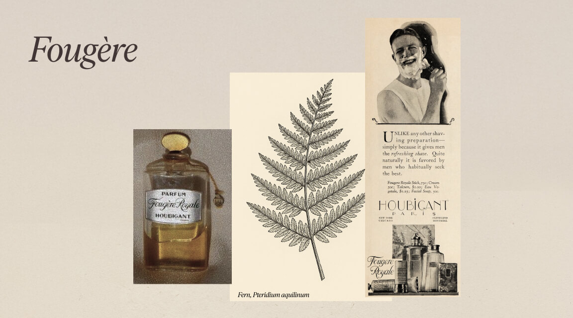 Fougère betekent “varen” in het Frans en is een geurfamilie die ontstond in 1882 met Houbigants Fougère Royale. Deze parfums zijn gebaseerd op een akkoord van lavendel, houtachtige tonen en zoet geurend coumarine. Ze zijn aromatisch-houtachtig en hebben de basis gevormd voor veel geuren die op mannen worden gericht – van klassieke barbershop-geuren tot moderne sportieve en aquatische varianten.