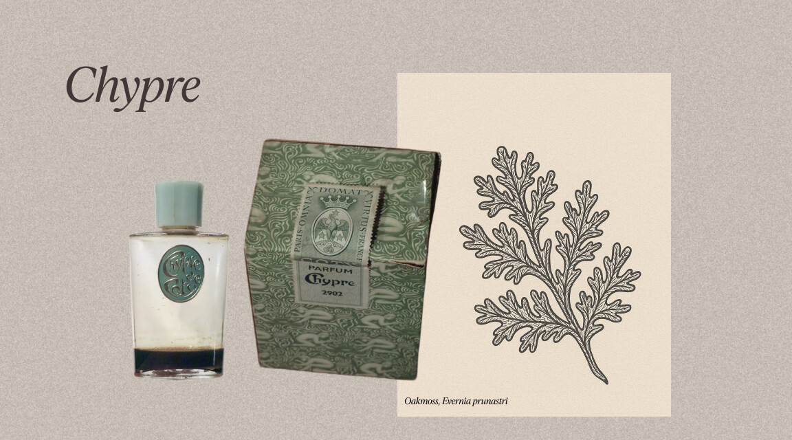 Chypre is Frans voor “Cyprus” en deze geurfamilie vindt zijn oorsprong in François Coty’s Chypre uit 1917. Het wordt gekenmerkt door de tegenstelling tussen frisse citrusnoten en een houtachtige basis van eikenmos, patchouli en labdanum. De stijl is elegant en complex en wordt sinds de jaren 90 steeds vaker gecombineerd met zoetere ingrediënten in veel commerciële parfums gericht op vrouwen.
