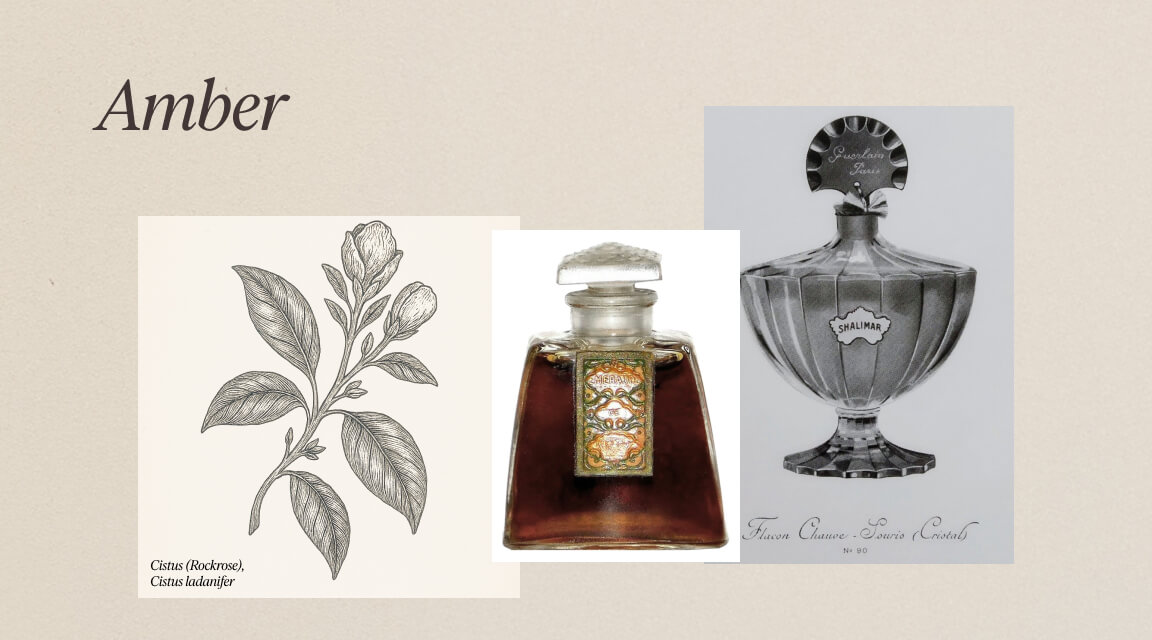 Amberparfums ontstonden in het begin van de 20e eeuw met klassiekers zoals Guerlain Shalimar en Coty Emeraude. Ze zijn opgebouwd uit warme, kruidige en zoete ingrediënten zoals vanille, labdanum en benzoë. De naam verwijst – enigszins verwarrend – niet naar barnsteen, maar naar de gouden warmte van de geur. De term “oriëntaals” wordt soms nog gebruikt, maar wordt tegenwoordig beschouwd als verouderd en koloniaal gekleurd.