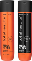 Matrix Total Results Mega Sleek Shampoo (300ml)Shampoo voor pluizig en onhandelbaar haar dat reinigt en hydrateert en schade aan het haar herstelt.Bevat sheaboter dat pluis onder controle houdt en de hele dag beschermt tegen vocht.Helpt dik haar te kalmeren.Geeft ook glans.