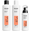 Nioxin System 4 Loyalty Kit is een haarverzorgingssysteem voor gekleurd haar met progressieve uitdunning. Deze unieke set van drie professionele haarverzorgingsproducten is speciaal ontworpen als haarverdikkingsbehandeling die zorgt voor kleurbescherming en voller haar. De Nioxin System 4 routine verfrist de hoofdhuid, vermindert haaruitval door breuk, versterkt het haar en geeft gekleurd haar een gezonde glans. Nioxin Cleanser Shampoo verwijdert vuil, overtollige olie en andere omgevingsresten van de hoofdhuid en het haar. Nioxin Scalp Therapy Conditioner is een lichtgewicht conditioner die het haar veerkracht geeft en tegelijkertijd de hoofdhuid en het haar van wortel tot punt hydrateert. Nioxin Scalp & Hair Treatment verfrist de hoofdhuid en helpt het haar er dikker uit te laten zien door de volheid van elke haarlok te vergroten. Nioxin System 4 Loyalty Kit is een combinatie van de oude Nioxin System 6 Kit en Nioxin System 4 Kit. De nieuwe Nioxin System Kit 4 is geschikt voor droog, beschadigd en gekleurd haar en is gericht op mensen met ernstiger haarverlies. Als je Kit 6 al geweldig vond, dan zul je de nieuwe Kit 4 geweldig vinden. Het is klinisch bewezen dat de kit haarverlies door gebroken haren tot wel 91%** vermindert.