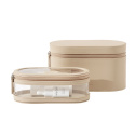 Een set van twee stijlvolle en elegante schoonheidsaccessoires, bestaande uit twee delen: een exclusieve, compacte toilettas en een transparant reisaccessoire dat internationaal is goedgekeurd voor vloeistoffen tijdens vliegreizen. Prachtig Scandinavisch design met premium uitstraling en uitzonderlijke duurzaamheid. Verkrijgbaar in vier kenmerkende tinten: neutraal, roze, zeeblauw en zwart.