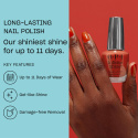 Lijkt als gel, ontgrendelt als lak. OPI presenteert de baanbrekende formule van Infinite Shine met een verhardende geltechnologie die glans, dekking en een langdurige duurzaamheid tot wel 11 dagen biedt. De gelachtige formule omhult de nagels voor een gladde en egale dekking zonder strepen of luchtbellen, en wordt eenvoudig verwijderd met aceton voor een snelle en schadeloze verwijdering. Het is zo goed dat je zou denken dat het gel is. Infinite Shine is alles wat je leuk vindt aan gel en alles wat je leuk vindt aan lak.