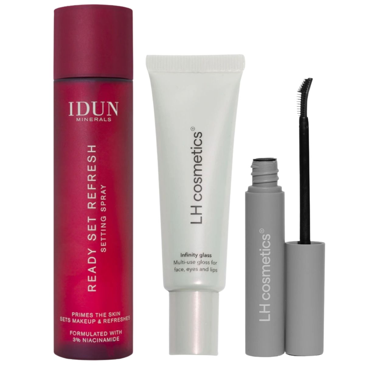 READY SET REFRESH. Een alles-in-één ultralichte gezichtsnevel die make-up voorbereidt, fixeert en hydrateert met een stralende finish. IDUN Minerals Ready Set Refresh Setting Spray met zijn gewichtloze formule zorgt ervoor dat je make-up beter en langer blijft zitten en geeft direct een gehydrateerd en verfrissend effect. Verrijkt met glycerine die vocht in de huid insluit en niacinamide (3%) die de huidbarrière versterkt, de huidelasticiteit verhoogt en het uiterlijk van de huid verbetert. Dit multifunctionele product houdt je huid in balans en kan worden gebruikt als primer om de huid te hydrateren voor je basis, tussen de verschillende stappen van je make-up routine en als finishing finish om de huid glad te maken, de poederige look te verwijderen en de make-up te fixeren. Het handige formaat van 100 ml maakt het gemakkelijk om mee te nemen, dus waarom niet één in het badkamerkastje, één in je tas en één voor je computer bewaren voor een gehydrateerd en stralend gevoel gedurende de hele dag.