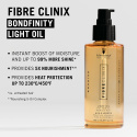 Fibre Clinix Bondfinity Light Oil is geformuleerd met de baanbrekende BONDFINITY Technologie om de natuurlijke keratine van het haar in te kapselen. Deze multifunctionele olie is speciaal samengesteld voor mensen met fijn tot normaal haar en geeft je de ultieme verzorging en bescherming. Met een exclusief 5-Oil Complex krijgt je haar een gladde en glanzende finish terwijl het van binnenuit wordt gehydrateerd. Het resultaat? Gezond, stralend haar dat bestand is tegen beschadiging - voor een lange tijd!