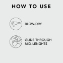 Gebruik:Breng de crème met je vingers aan vanaf het midden van het haar naar de punten. Geschikt voor na het föhnen of op elk ander moment van de dag om het kapsel bij te werken.