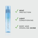 Hitte beschermende spray met lichte glans. Met bergkristal extract, ontworpen om het haar mild te conditioneren en te beschermen terwijl het body en sprankelende glans toevoegt.