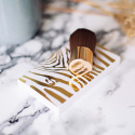 Phyto-Touche Poudre Eclat Soleil is een poedercrème met een ongekende textuur voor een bruine teint op maat. Het golvende ontwerp bestaat uit twee tinten goudbeige om de bruining naar behoefte te doseren, en een blushkleur om frisheid en glans toe te voegen. De onmerkbare textuur smelt in de huid als een crème, voor een glad, homogeen en poedervrij resultaat. De huid wordt direct mooier. Phyto-Touche plakt gemakkelijk en versmelt met de huid voor een perfecte, natuurlijke en langhoudende make-up. De zachte, niet-wormende formule, verrijkt met cameliaolie en sheaboter, voedt de huid bij elke applicatie. Bij het doosje met gouden zebrastrepen zit een mini kabukikwastje - een elegant make-up accessoire om overal mee naartoe te nemen.